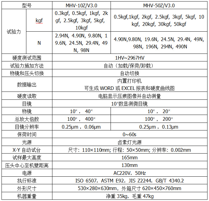 MHV-10Z/50Z/V3.0全自动维氏硬度计,集成了光学成像、机械位移、电子控制、数字成像、图像分析、计算机处理等多种专业新技术,通过计算机主机实现对维氏硬度计和自动载物台的控制,并将硬度压痕数字化成像在计算机屏幕上,再通过自动读数、手动读数等手段,准确测量金属及部分非金属材料及各种膜层、镀层的显微硬度、硬化层深度、膜层厚度、两点间距等。还可拍摄金属表面形貌并进行固定倍率打印等。这一系统,突破了传统硬度的测试方式,实现了全自动、高精度、高重复性的硬度测试,是材料分析的重要设备。
